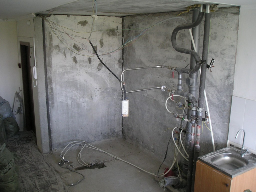 - Придать помещению более эстетический вид можно, убрав коммуникации в стены или специальный короб. Сделать это со старой конструкцией не всегда возможно. Разобрав ее, можно осуществить перепланировку водопроводных труб. За счет увеличения полезной площади получается развернуть ванну, изменить расположение унитаза.
