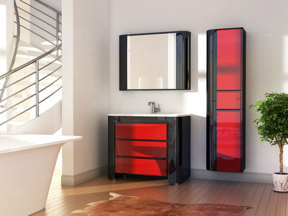Тумба под раковину должна быть крепка и вместительна. В шкафах обратите внимание на количество открытых полок. Чем их больше, тем тщательнее и чаще придется производить уборку и протирать пыль. Чтобы ванная комната стала эффектной, важно уравновесить ее в цвете. Например, плитка на стенах светлых тонов и яркая экстравагантная мебель красных, зеленых, желтых тонов. Можно и наоборот – светлая мебель, белая ванна и раковина на фоне кафельных стен какого-либо насыщенного цвета.