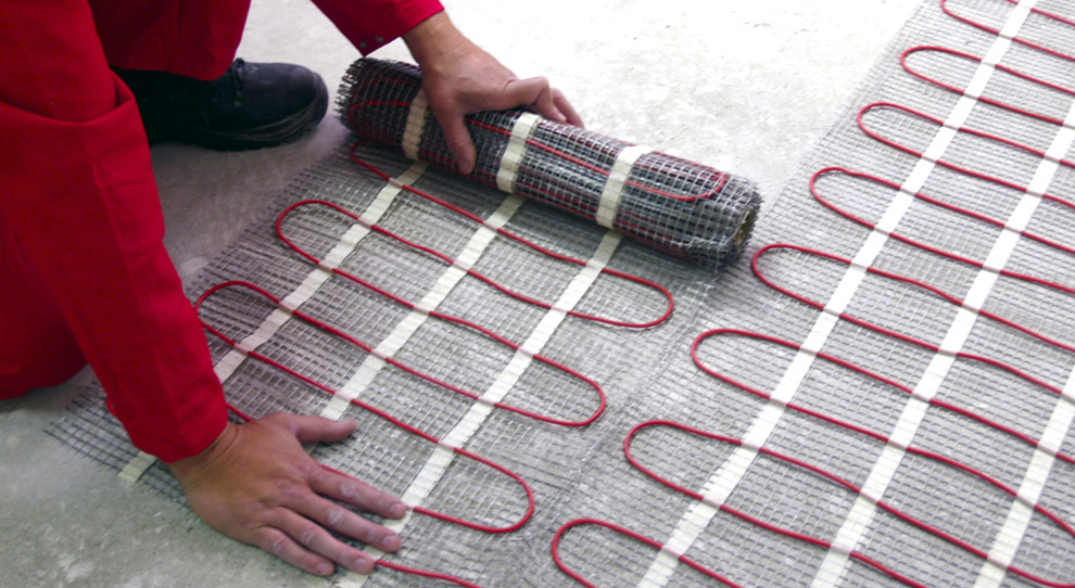 Второй вариант теплого пола для ванной предусматривает применение в качестве нагревательного элемента электрического провода. Температура пола регулируется при помощи термостата. Монтаж теплого пола в ванной с использованием этой технологии имеет ряд недостатков. Основные – это высокое потребление электроэнергии и возможность использования только после полного высыхания стяжки. Электрический кабель перед заливкой фиксируют с помощью специальной ленты или сетки. Это позволяет избежать его смещения в процессе заливки пола бетоном или специальной смесью. Под кабель монтируют теплоизоляционный слой или слой фольги, который будет препятствовать прохождению тепла в нижнем направлении. Температурный датчик устанавливается между элементами нагревательного кабеля в специальной пластиковой трубке. Концы нагревательного кабеля подсоединяются к терморегулятору. Он располагается на стене в удобном и доступном месте. Для монтирования электрической системы отопления пола в качестве нагревательного элемента применяется полностью изолированный кабель, который препятствует излучению и возгоранию. В некоторых случаях терморегулятор можно программировать на период до 7 дней. В качестве средств контроля за нагревательным оборудованием применяют датчики температуры для пола и воздуха. Последние целесообразно монтировать в комнатах, коридорах, офисных и подвальных помещениях.