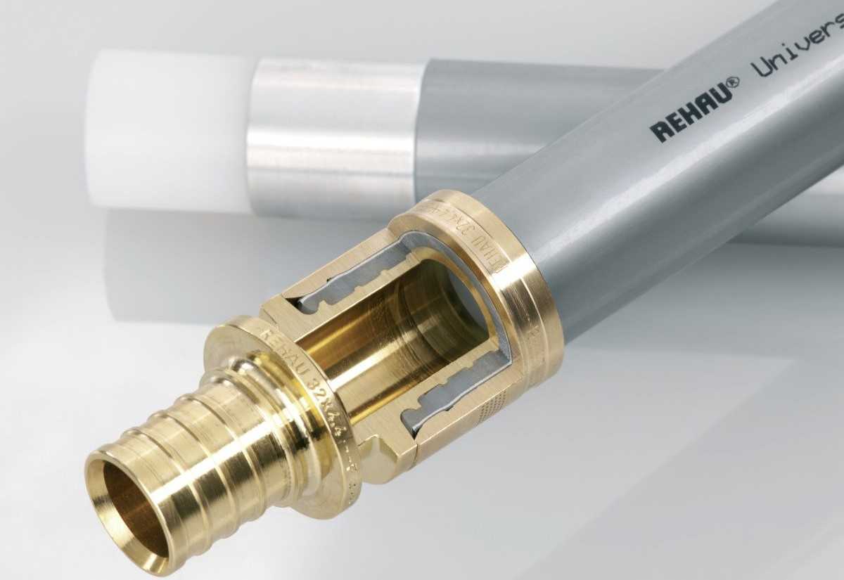 Фитинги REHAU ( уголки, тройники, переходники, крестовины и др.) изготавливаются из латуни, стойкой к вымыванию цинка, что важно для районов с повышенной агрессивностью водопроводной воды или из полимеров. Фитинги позволяют производить подсоединение труб и из стены, и из пола, и из плинтуса. Надвижные гильзы, используемые для холодной запрессовки соединений – бронзовые или полимерные. Фитинги, как и сами трубы, могут прослужить полвека (50 лет и более).