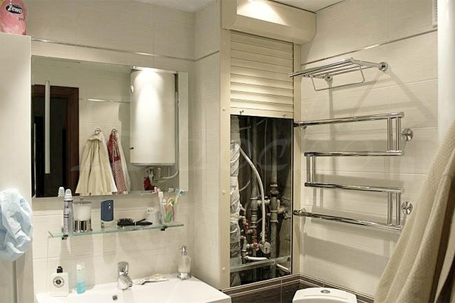 Сегодня многие люди заботятся не только о гармонии в дизайне жилого помещения, но и в интерьере ванной комнаты и туалета. В принципе, создать оригинальный декор не сложно, но как же закрыть столь не эстетичные на вид сантехнические трубы, вентили, подводы, счетчики, фильтр? В этом могут помочь обычные защитные ролставни. Это роллетная система компактного размера, изготовленная из самого легкого профиля. Несмотря на то, что изначально они предназначались для защиты окон с внешней стороны зданий, они все чаще применяются для закрытия различных ниш в помещении. Сантехнические ролставни имеют целый ряд преимуществ, по сравнению со стандартными распашными дверцами. Установка сантехнической ролставни не требует крепления петель, свободного пространства для раскрытия дверцы. В поднятом состоянии она полностью открывает пространство ниши, стойкое покрытие продлевают срок службы ролставни. Кроме того, после их установки, будет слышен значительно меньше характерный звук воды в трубах.