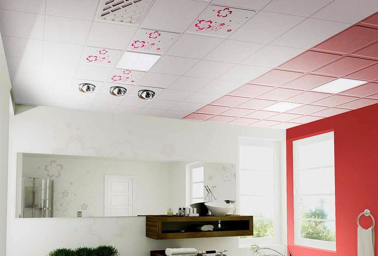 Выбор потолка для ванной можно остановить на влагостойких плитах для потолка. Такие плиты специально проходят обработку, чтобы размещаться в помещениях с большой влажностью. Этот способ является легким, так как для оклеивания потолков используют легкие потолочные плиты. Достоинством этого способа является то, что он не поглощает высоту помещения, но он не так влагостоек как другие способы.